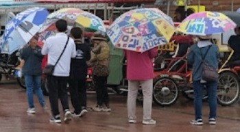 °©Àڱ⠳»¸° ºñ·Î ¿ì»êÀ» ÁغñÇÏÁö ¸øÇÑ °ü±¤°´µéÀÌ Çö¼ö¸· ¿ì»êÀ» ¾²°í ÇÑź°­ °¡µçÆä½ºÅ¸¸¦ Áñ±â°í ÀÖ´Ù